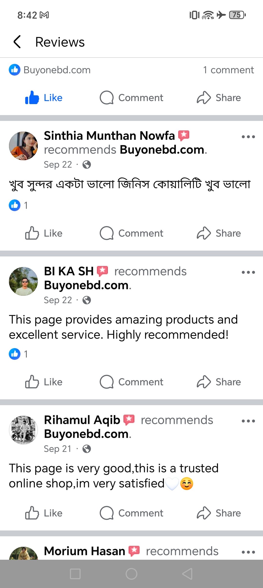 Positive reviews from valued customers
